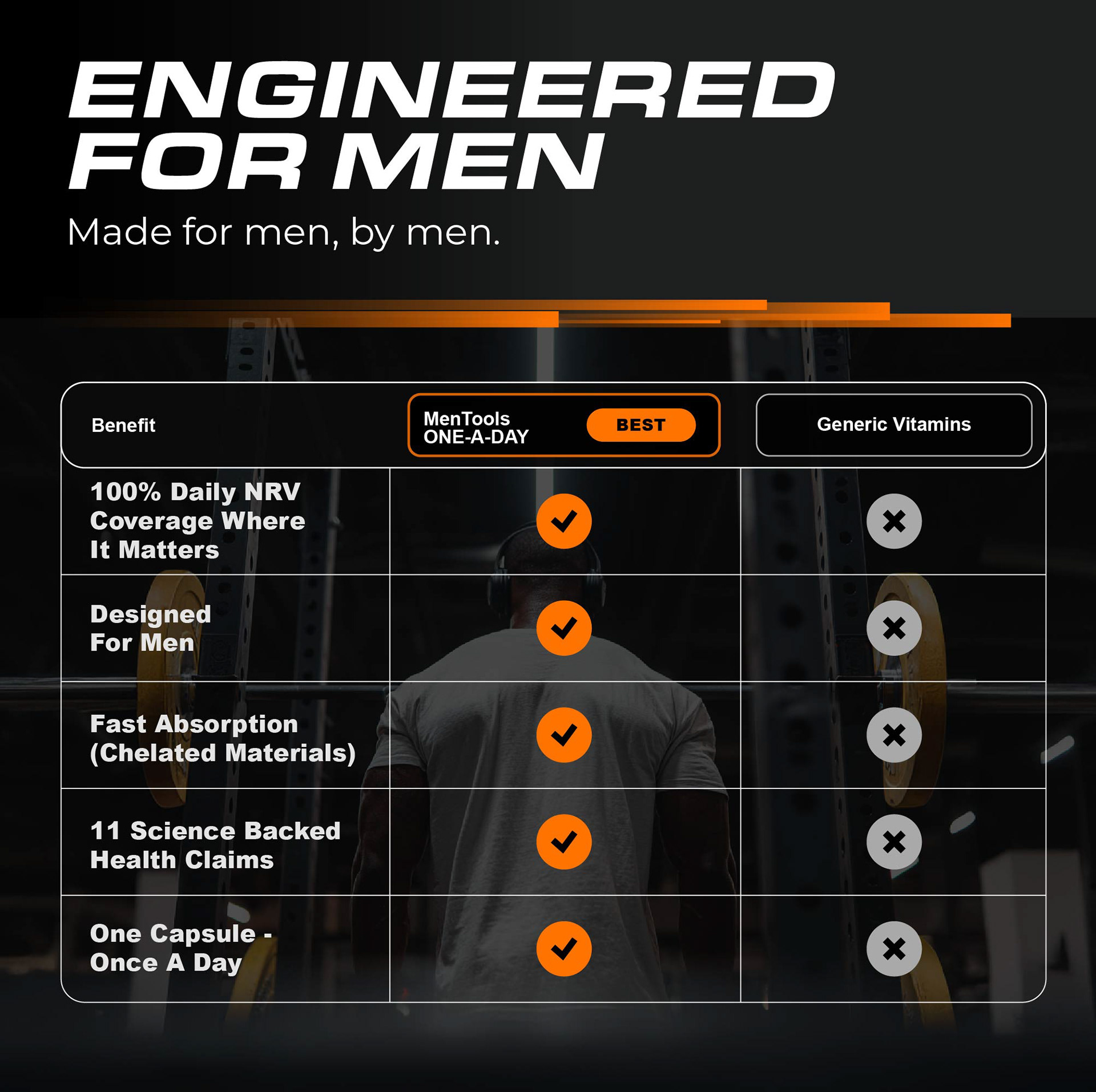 The MenTools multivitamin launch was handled entirely in-house, meaning every visual element from product photography and lifestyle imagery through to A+ content modules, static ad creative and launch video was conceived and produced by one person, without an external agency or production team.
